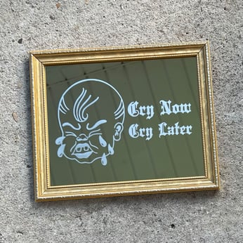 Cry Now Cry Later Etched Framed Mirror